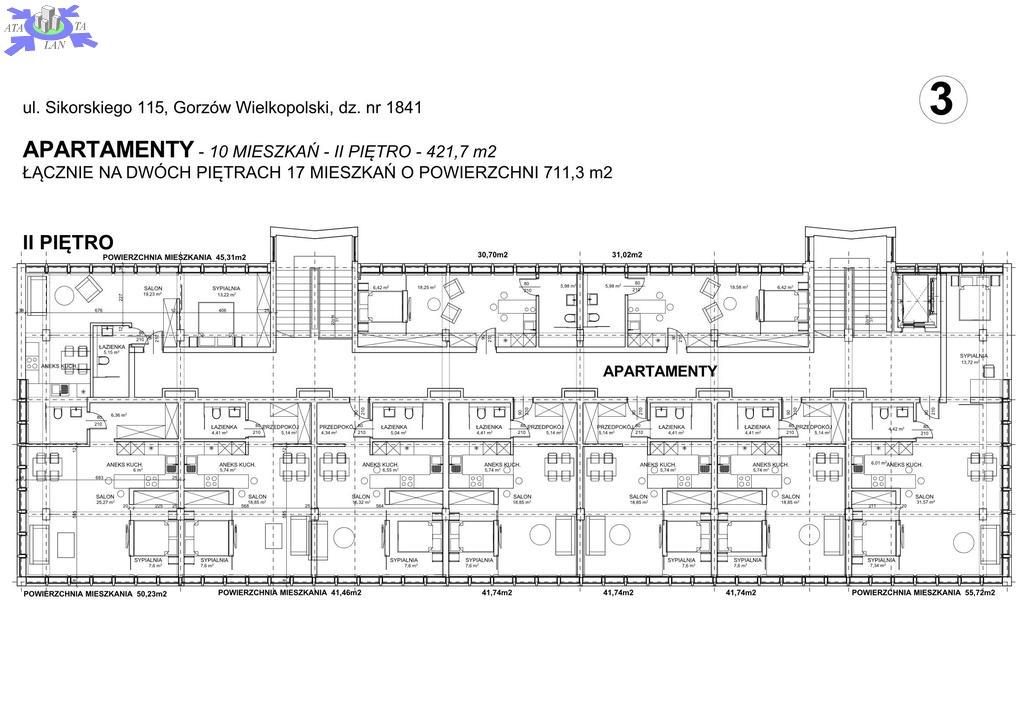 Zostały wydane warunki dobudowania 3 piętra, zwiększające powierzchnię nieruchomości o dodatkowe 500 m2 (do łącznej pow. 2430 m2), co daje jeszcze większe możliwości inwestycyjne.
