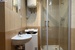 Aneks kuchenny oraz łazienka wyłożone w płytkach ściennych a na podłogach terakota.