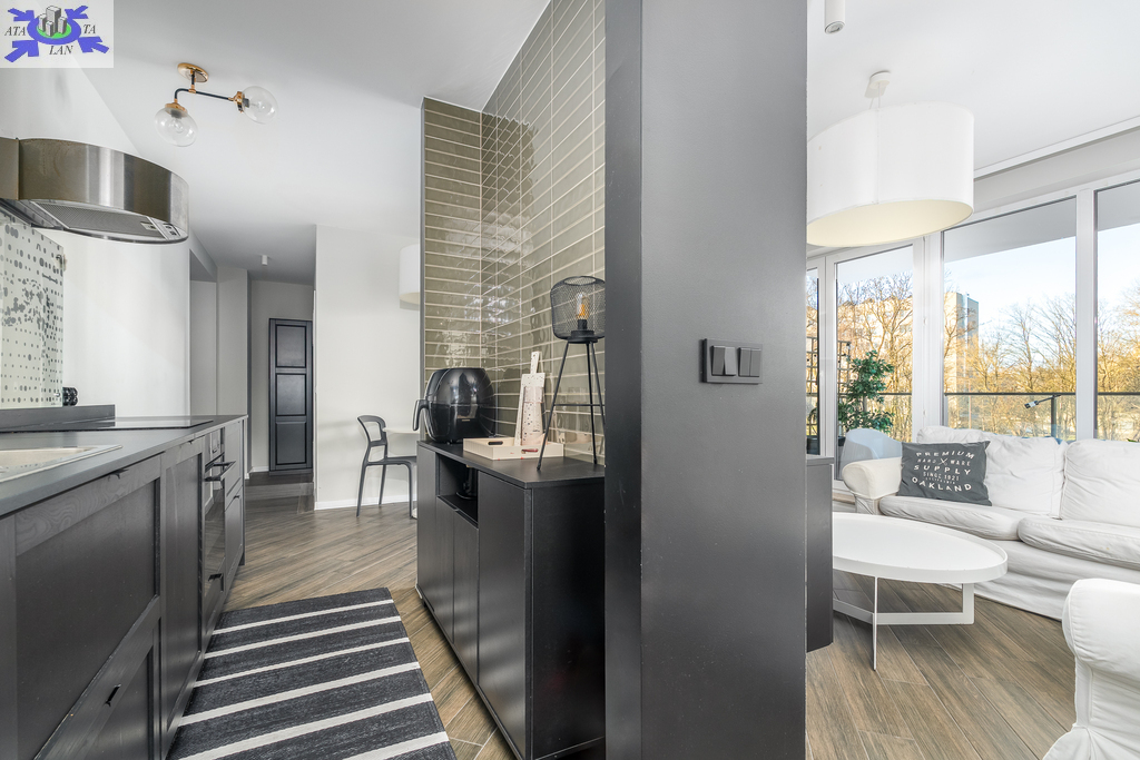 Mieszkanie wykończone materiałami dobrej klasy, zaprojektowane w sposób funkcjonalny i ponadczasowy. Duże przeszklenia gwarantują doskonałe doświetlenie wnętrz przez cały dzień.