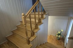 Drewniane schody prowadzą na użytkowe poddasze, na którym znajdują się