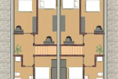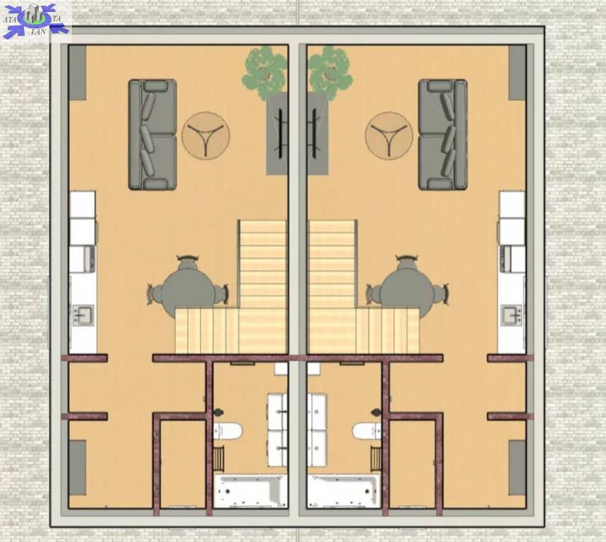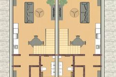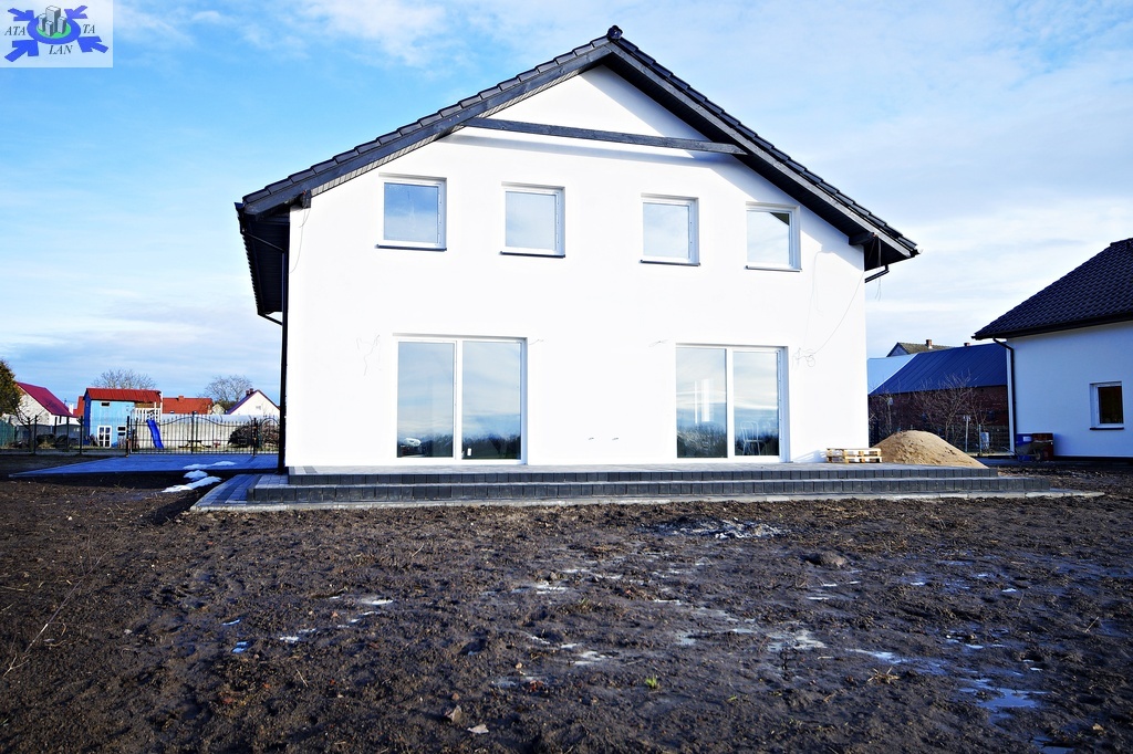 Dom składa się z 4 pokoi, dużego salonu na parterze połączonego z aneksem kuchennym z wyjściem na słoneczny taras, 2 łazienek, 3 sypialni na piętrze oraz pomieszczenia gospodarczego.