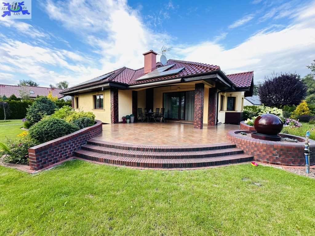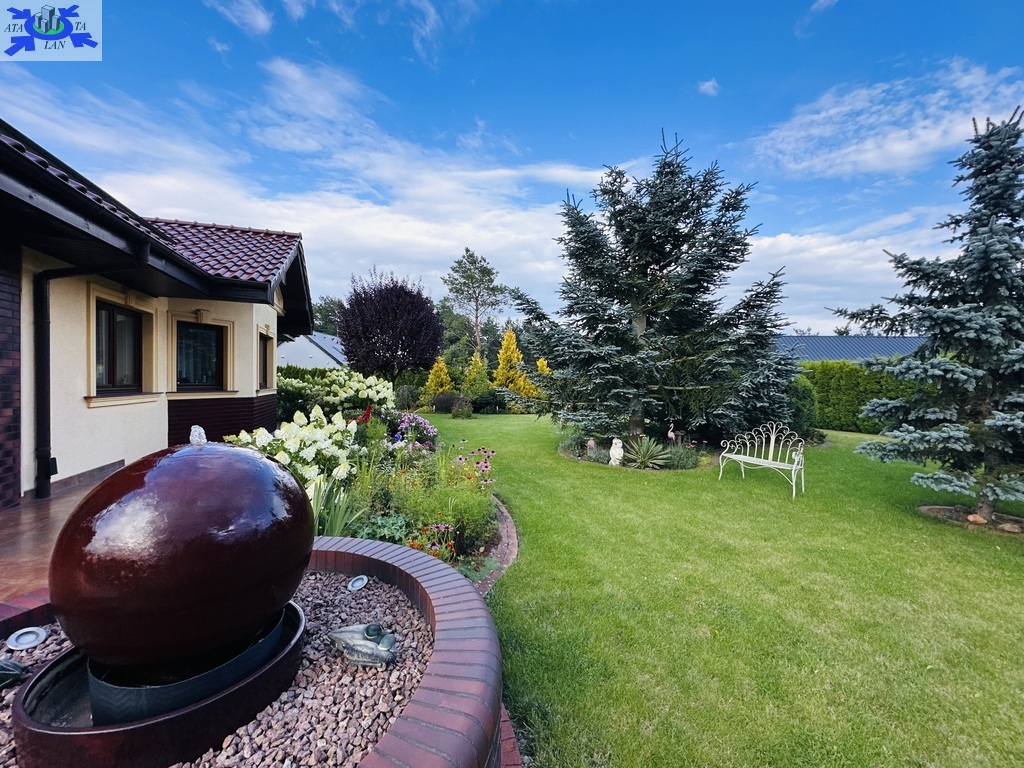 Pięknie zagospodarowany ogród o powierzchni 1400 m2 z oryginalną architekturą ogrodową pergolą, fontanną, drewnianą altaną z antresolą , tarasem rekreacyjnym.