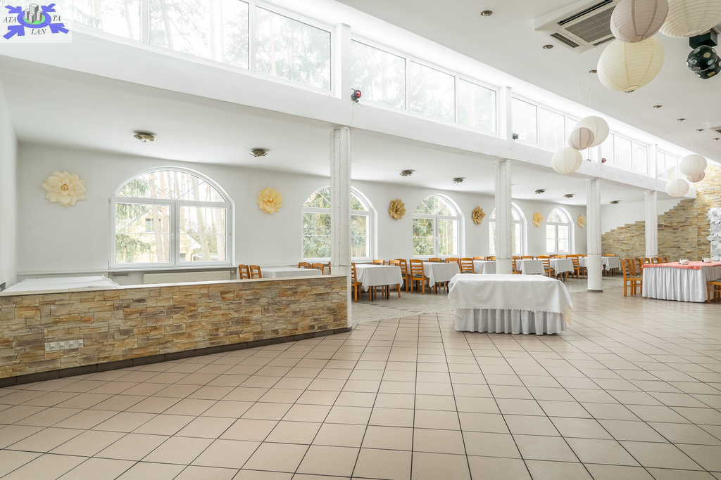 Budynek Hotelowy (3 kondygnacje, 1 274,2 m2) Oferuje 40 pokoi (2 i 3-osobowych) z pełnym węzłem sanitarnym. Idealny do adaptacji na pokoje opieki lub luksusowe apartamenty hotelowe. Budynek Gastronomiczny (Sala Weselna, 1 034,05 m2) Reprezentacyjna, klimatyzowana sala z pełnym zapleczem kuchennym, zdolna obsłużyć eventy na 100 osób. Budynek Garażowy (190 m2) 6 stanowisk postojowych, zapewniających zaplecze logistyczne dla obiektu.