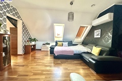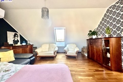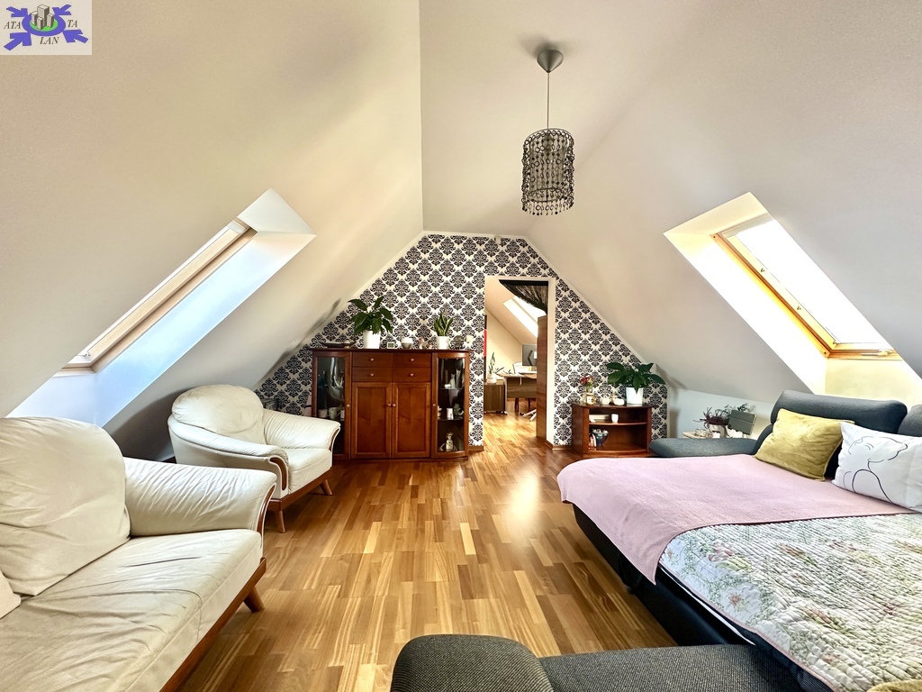 -przestronny pokój z antresolą i małą garderobą,