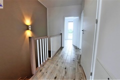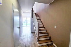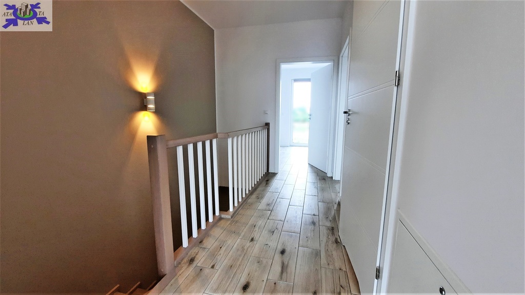 Wykończenie w jasnych, neutralnych kolorach. Na podłogach w całym domu gres imitujący deskę. Instalacja grzewcza podłogowa.