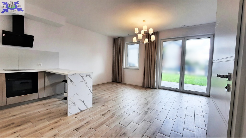 piekarnik, okap, wszystkie sprzęty nowe na gwarancji). Z salonu wyjście na teras (6 m2) i do ogródka ( 65 m2).