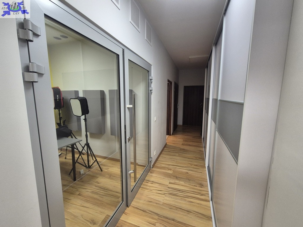 Powierzchnia lokalu to ponad 112m2 i składają się na nią duża przestrzeń open space, 2 gabinety, zaplecze socjalne. Istnieje możliwość dostawienia ścianek działowych i wydzielenia dodatkowych pomiesczeń.