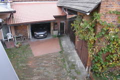 -zamknięte podwórze ograniczone bramą automatyczną na pilota,