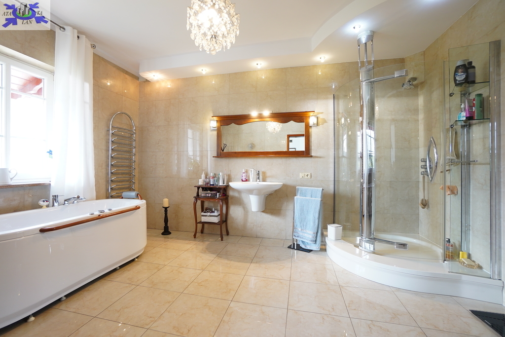 Dom posiada wiele nowoczesnych rozwiązań m.in studnia głębinowa z hydroforem, instalacje alarmowe, kominek, ogrzewanie podłogowe. Dom jest wykonany z najwyższej jakości materiałów i jest gotowy do wprowadzenia się. Nieruchomość posiada wyjątkowy styl, z każdej strony domu wpada dużo światła, przez co wnętrze jest bardzo jasne .