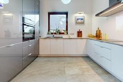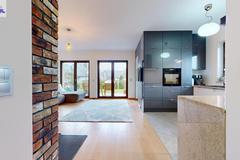 Wnętrza wykończone z wysokiej jakości materiałów, na podłogach deska dąb Walczak oraz włoskie gresy Atlas Concorde.