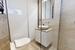 - łazienka z prysznicem, w której znajduje się piec dwuobiegowy Bosch w zabudowie
