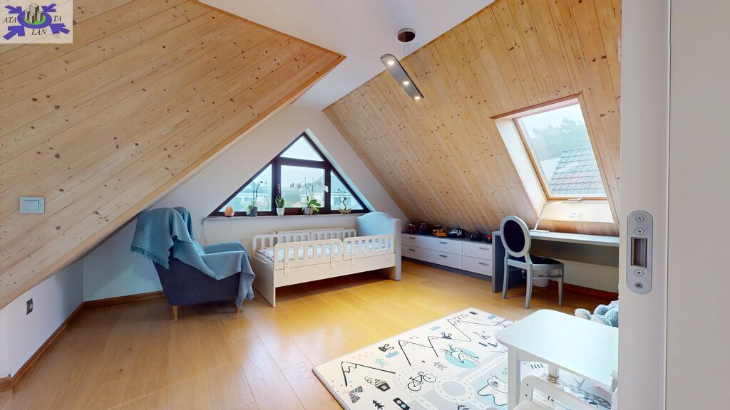 Działka w pełni zagospodarowana z nasadzeniami, trawa z rolki, system nawadniania Rain Bird oraz robot koszący Husqvarna. Na działce domek gospodarczy ze składzikiem na drewno opałowe, drewniana huśtawka wykonana na zamówienie, oraz sauna wolnostojąca.