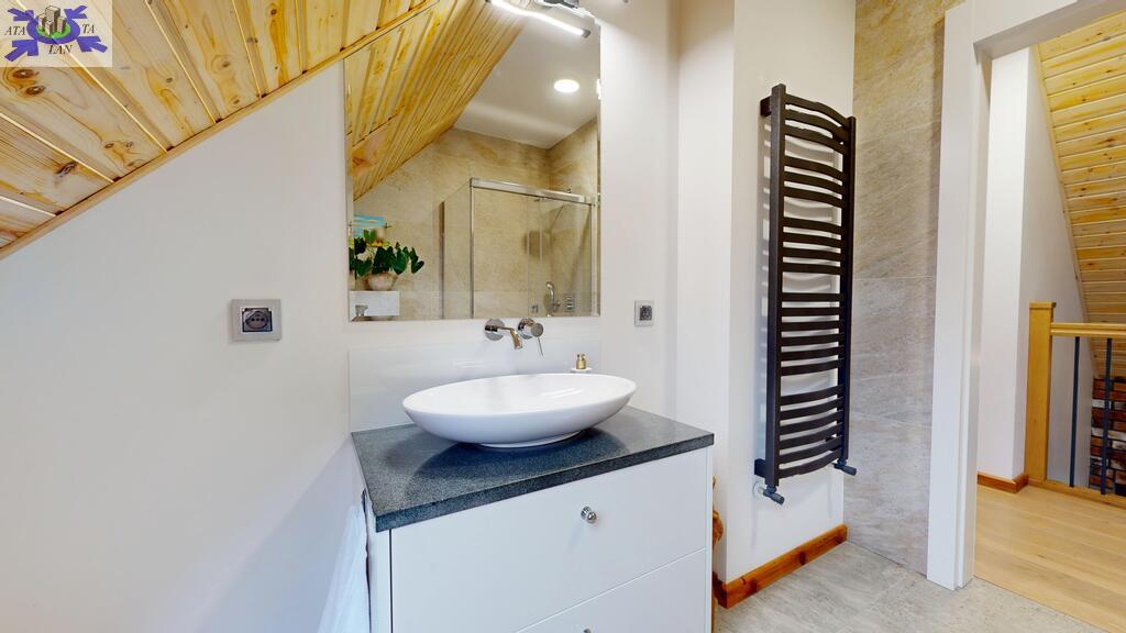 - łazienka z oknem, wykończona z włoskich materiałów (gres Atlas Concorde)
