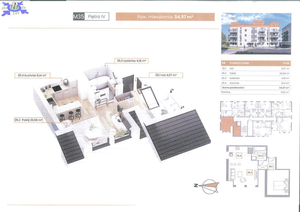 Przedmiotowe mieszkanie znajduje się na CZWARTYM PIĘTRZE. Składa się z pokoju dziennego o powierzchni 20,58mkw, kuchni 6,14mkw łazienki 4,18mkw oraz hallu 4,07mkw. Do mieszkania przynależy piwnica o powierzchni 2,90mkw.