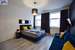 Na podłodze panele, główna ściana w salonie wyłożona dekoracyjną tapetą, pozostałe malowane. W kuchni, przedpokoje i łazience terakota.