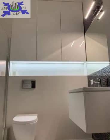 Mieszkanie składa się z 2 sypialni, garderoby, salonu z aneksem kuchennym (lodówka, płyta indukcyjna, piekarnik i zmywarka), łazienki, pomieszczenia gospodarczego i balkonu.