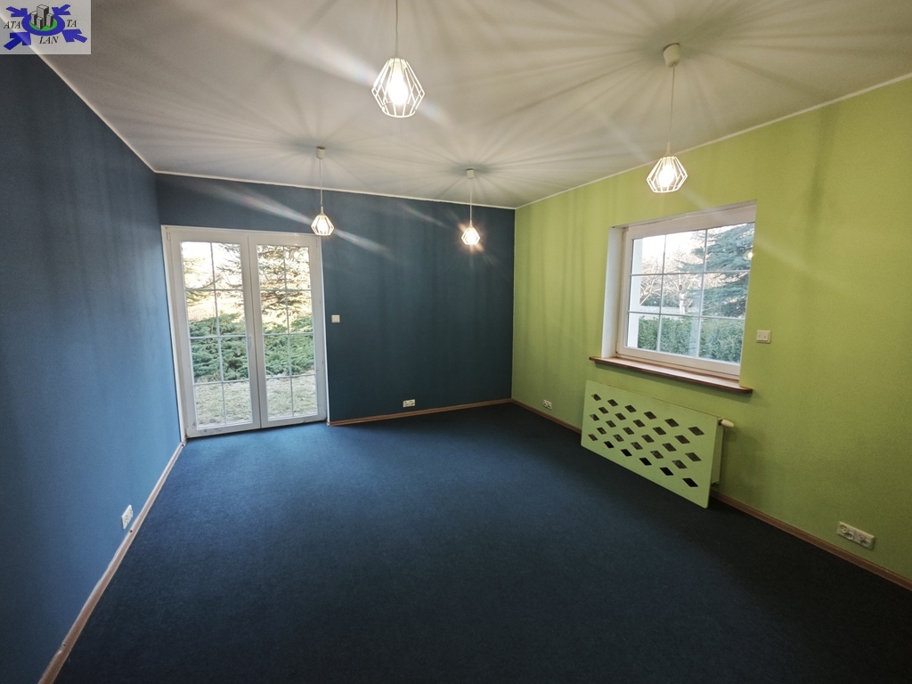Z każdego pokoju bezpośrednie wyjście na duży, piękny ogród, który pozostaje wyłącznie do dyspozycji najemcy. Teren jest w całości ogrodzony, co zapewnia bezpieczeństwo i komfort użytkowania.
