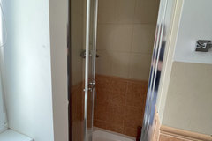 Na podłogach panele i terakota.