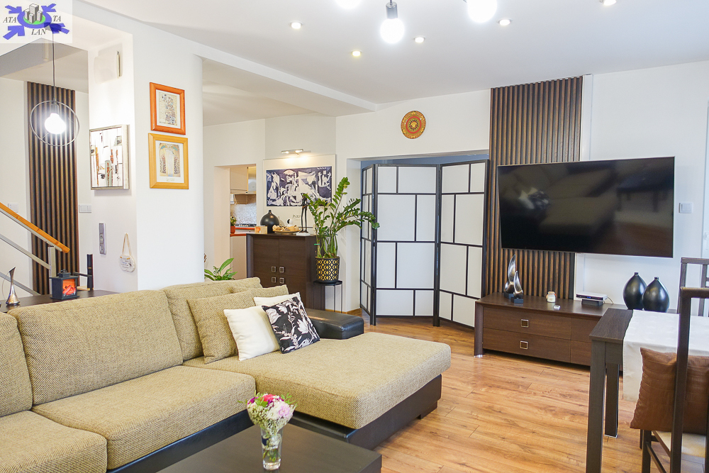 Dom wolno stojący w klimatycznym, malowniczym, spokojnym otoczeniu. Nieruchomość otacza bardzo zadbany ogród z bogatymi nasadzeniami zapewniającymi prywatność i sprzyjającymi relaksowi. Wśród licznych roślin znajdziemy tu hortensje, rododendrony, róże, szkarłatki, trzmieliny, trawy ozdobne, perukowca, dwie piękne magnolie, piwonie drzewiaste, chiński niezwykle pachnący bez, trzy wierzby Iwa, wiśnię japońska, judaszowca, iglaki, a pośród nich fontanna i miejsce do grillowania oraz miejsce na jacuzzi, haki na dwie huśtawki, mocowanie do telewizora, głośniki na zewnątrz. Możliwość zamieszkania przez rodzinę dwupokoleniową lub prowadzenia działalności w przyziemiu.
