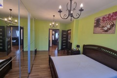 Sypialnia Master Oaza spokoju z komfortowym łożem oraz przestronną, lustrzaną szafą, która optycznie potęguje wrażenie luksusu.