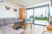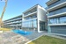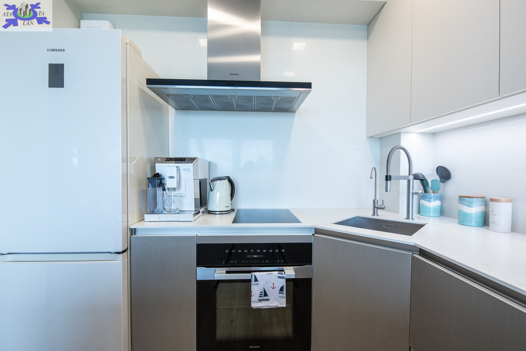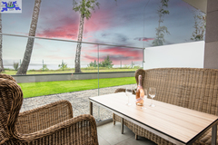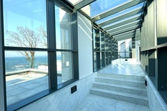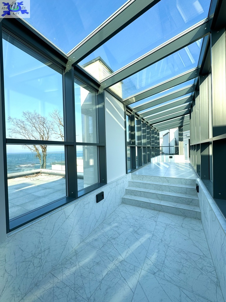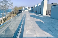 Apartament zaprojektowany w nowoczesnym stylu z tarasem ze szklaną balustradą skierowanym ku morzu.