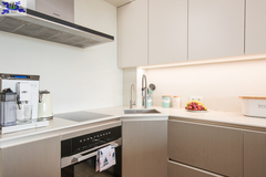 W apartamencie zastosowano ogrzewanie podłogowe. Dodatkową funkcję grzewczą i chłodzącą pełni klimatyzacja.