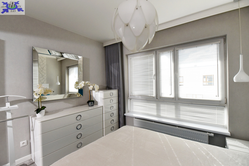 Strefa wypoczynkowa, salon Komfortowa, doskonale doświetlona przestrzeń z szerokimi drzwiami tarasowymi prowadzącymi na słoneczny taras o powierzchni 10,5 m2 z wystawą południowo wschodnią, okna z dwóch stron świata. Przytulna aranżacja, idealna do relaksu, na ścianie wbudowany panel kominkowy na biopaliwo o dużej mocy grzewczej.Strefa kuchenna/jadalnia Funkcjonalnie zaprojektowana przestrzeń z wysokiej jakości meblami w zabudowie oraz nowoczesnym sprzętem AGD, duże okno.Sypialnia Ustawna, z dużym oknem, wyposażona w zasłony zaciemniającePokój doskonale doświetlony, może służyć jako gabinet lub pokój dziecięcyŁazienka Wyposażona w kabinę prysznicową oraz WC, nowoczesny design, zaprojektowana z myślą o funkcjonalności.Hall Z pojemną szafą oraz gigantycznym lustrem na ścianiePomieszczenie gospodarcze oddzielne pomieszczenie na pralkę i suszarkę.Wszystkie okna wyposażone w drewniane białe wewnętrzne żaluzje