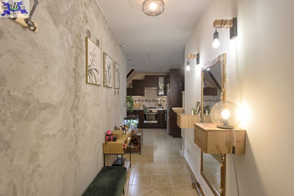 Ściany wygładzone i pomalowane, na podłodze w części mieszkalnej parkiet, w kuchni i łazience terakota.