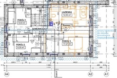 Powierzchnia domu ok. 112,53 m2 (salon z aneksem + 3 sypialnie, 2 łazienki).