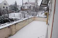 duży balkon z widokiem na zieleń