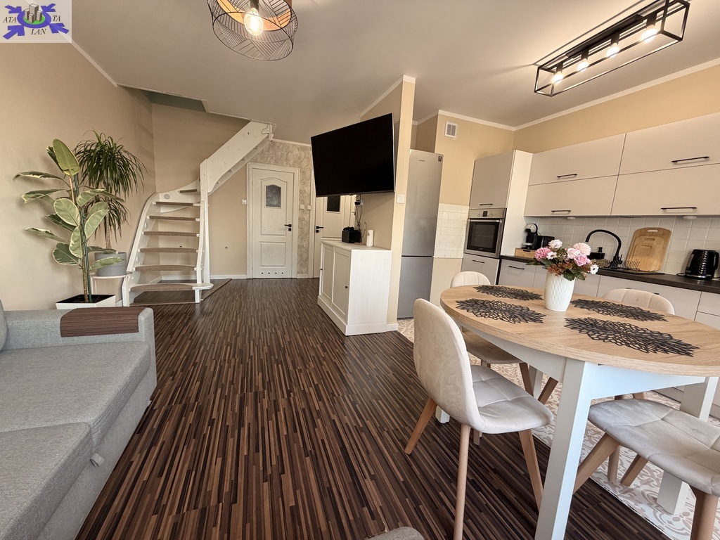 Powierzchnia całkowita mieszkania to 85m2 a użytkowa 75,5m2, w skład której wchodzą dwa poziomy