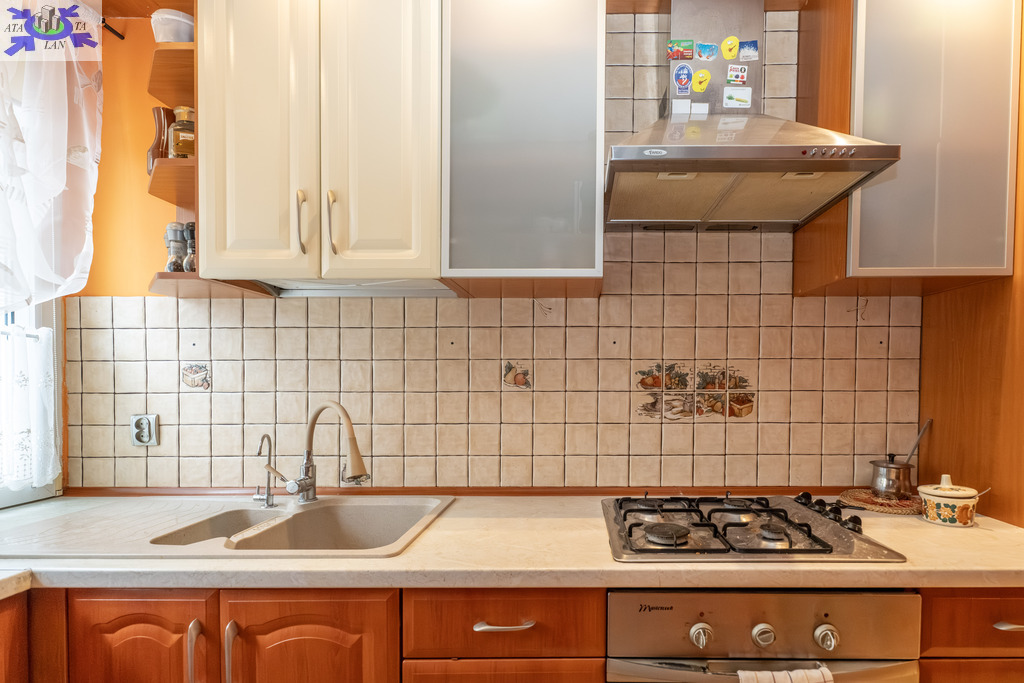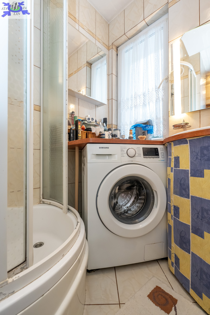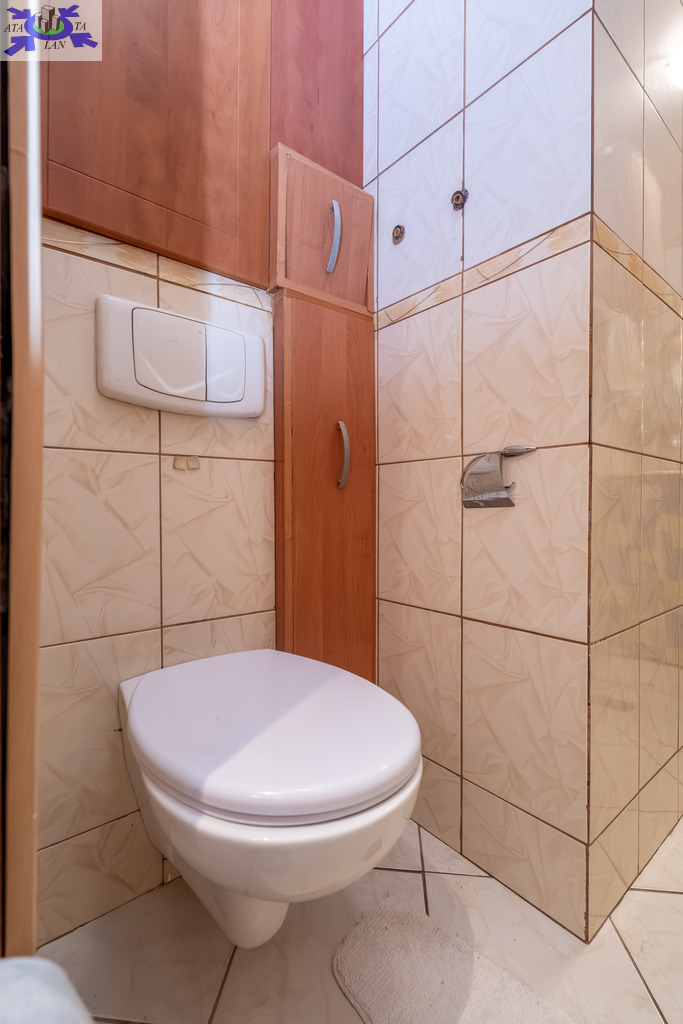 Kuchnia widna, zabudowa kuchenna ze sprzętem AGD w cenie mieszkania. Łazienka razem z WC, kabiną prysznicową w glazurze i terakocie.