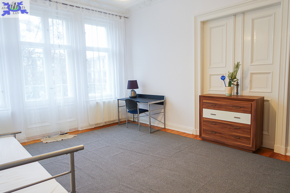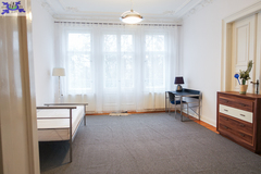 For rent for 3 to 6 people a very atmospheric apartment on the third floor of a well-kept tenement house in the Center, near al. Wojska Polskiego. Total area 118.34 m2. 4 rooms, kitchen, bathroom, toilet. Height of the apartment 3.3 m. Cost 3800 PLN + rent to the manager 1000 PLN (without water and garbage collection 660 PLN) + electricity, gas. Gas heating, hot water from a gas furnace. Spacious rooms, beautiful stucco on the ceilings, large kitchen. Furnished rooms, but can be without furniture. Room 24, 6 m2 with access to the balcony, room 24.6 m2, room 24.75 m2 from it passage to room 14 m2. Spacious hall. In the furnished kitchen with a window two smaller refrigerators and the other with a freezer, gas stove. In the bathroom with a window bathtub, sink, washing machine, space for a second washing machine. Additionally, a 6 m2 toilet with a window with a sink. Wooden floors covered with carpet. Beautiful door joinery. Deposit PLN 6,000. Electricity in copper, available internet and TV from the UPC network (tenants sign an individual contract for the supply of internet or cable TV). Apartment intended for a family (occasional lease) or a contract for a company for management staff.