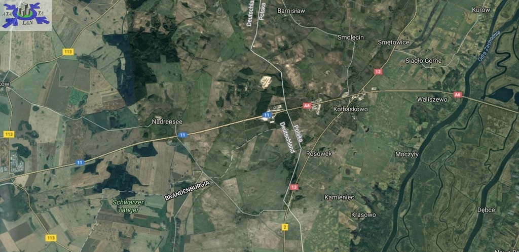 Duża nieruchomość gruntowa położona w Kołbaskowie, przy drodze krajowej nr 13, na trasie na Rosówek.