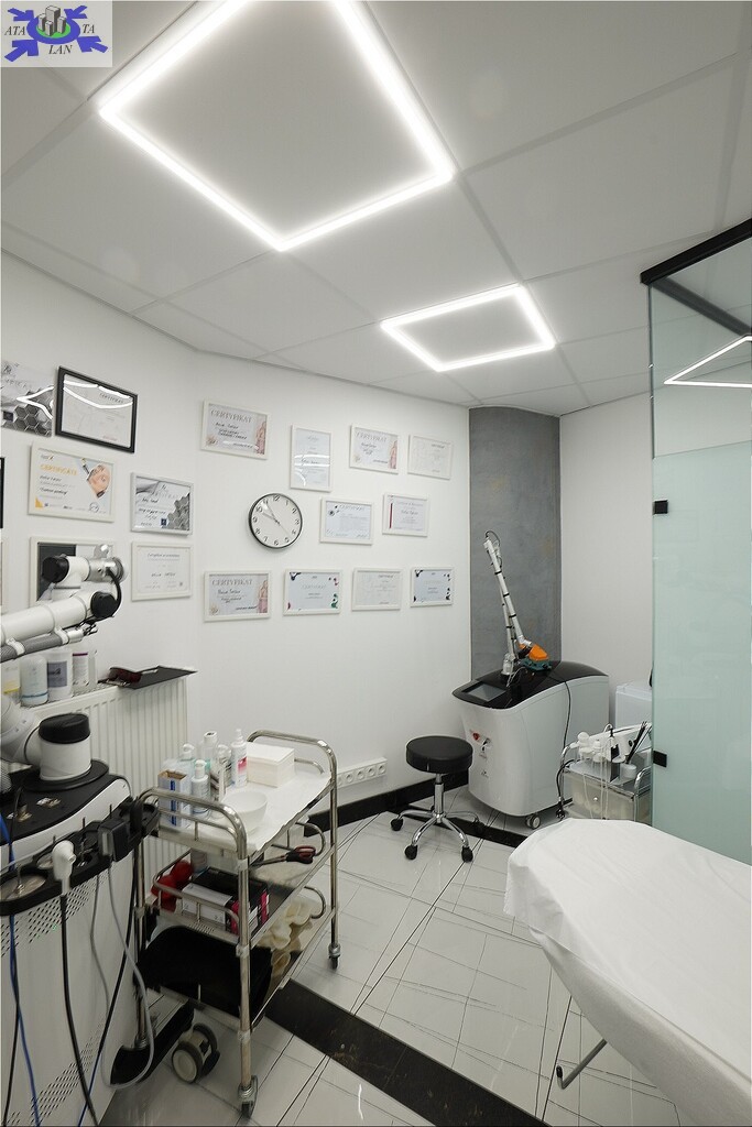 4 nowoczesne stanowiska do manicurePrzeszklony gabinet pedicure z brandingiem salonu i ergonomicznym fotelemGabinet zabiegów iniekcyjnych z elektrycznym fotelem kosmetycznym i profesjonalnym oświetleniem (botoks, mezoterapia, wypełniacze).3 niezależne, w pełni wyposażone gabinety do zabiegów kosmetologicznych i estetycznych, każdy z dostępem do bieżącej wody.Profesjonalne stanowisko do stylizacji brwi lub makijażu z odpowiednim oświetleniem.W pełni wyposażona recepcja z zapleczem sprzedażowym (laptop, terminal, kasa, drukarka, witryna ekspozycyjna).Komfortowa strefa oczekiwania dla klientów z miejscem do relaksuPomieszczenie socjalne z zapleczem kuchennym, szafkami pracowniczymi i wyposażeniem dla klientów.System monitoringu wizyjnego na terenie salonu