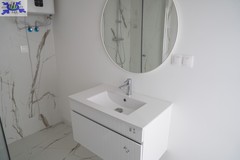 * W skład wykończenia wchodzi ściany wygładzone i pomalowane na biało, ogrzewanie podłogowe elektryczne - maty grzewcze, panele w salonie i sypialni, drzwi do sypialni i łazienki w kolorze białym, oświetlenie, łazienka w pełni wykończona kafle, umywalka z szafką, lustro, wc, kabina prysznicowa, piec elektryczny do ogrzewania ciepłej wody. Cena nie obejmuje zabudowy kuchni oraz mebli pokojowych.