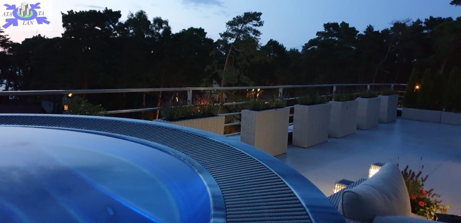 Jedyna taka nieruchomość na wybrzeżu. Apartament znajduje się w miejscowości Pobierowo około 80m od zejścia do morza w apartamentowcu z 2018r.. Wykończony w bardzo wysokim standardzie-meble na wymiar, marmury oraz armatura wysokiej klasy. Nieruchomość składa się z dużego salonu z aneksem kuchennym, łazianką z prysznicem oraz z jednej sypialni i dodatkowej łazienki z prysznicem. Wjazd windą bezpośrednio do apartamentu (bez klatki schodowej). Atutem nieruchomości jest bardzo duży słoneczny taras z widokiem na morze około 100m2 oraz dwa mniejsze tarasy o powierzchni około 35m2. Dodatkowo na dużym tarasie zlokalizowane jest jacuzzi 5 osobowe.