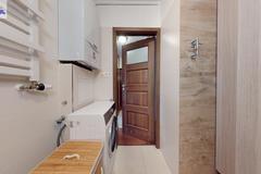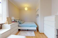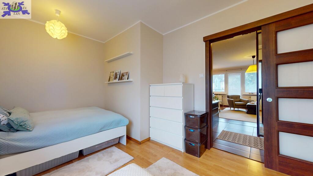 Mieszkanie jest jasne i dobrze nasłonecznione, idealnie położone względem stron świata. Salon z balkonem od strony południowo- zachodniej, sypialnia od wschodu. Lokal zaaranżowany i wykończony ze smakiem. Podłogi w pokojach wyłożone ładnymi panelami a w aneksie kuchennym i korytarzu kaflami. Ściany gładkie malowane. Komfortowa łazienka z prysznicem i miejscem na pralkę, wykończona eleganckimi kaflami. W korytarzu pojemna szafa w zabudowie, drzwi antywłamaniowe, okna PCV. Ogrzewanie i ciepła woda z energooszczędnego pieca gazowego marki Vaillant.
