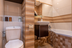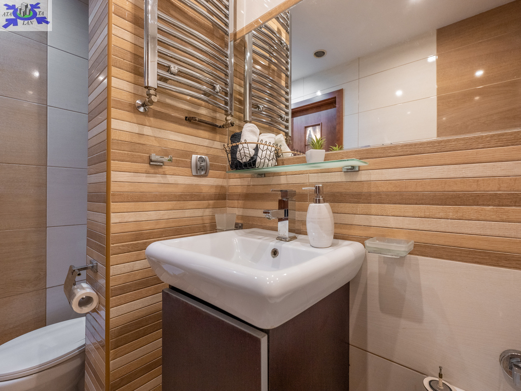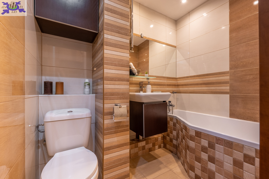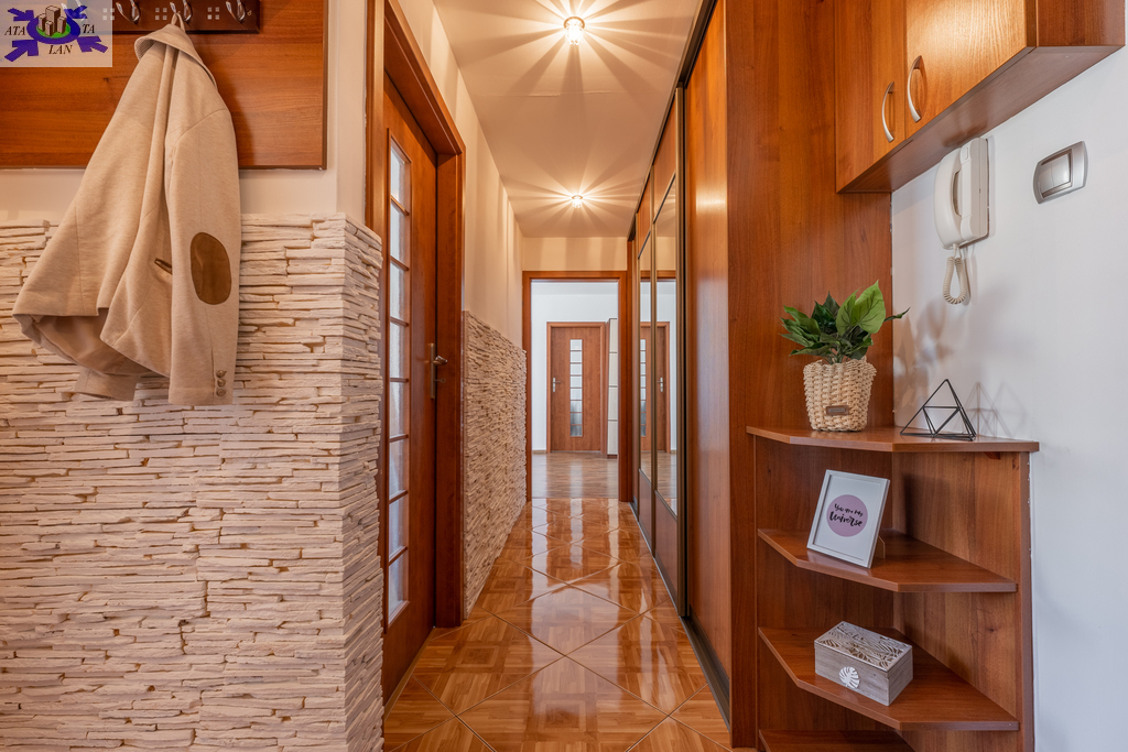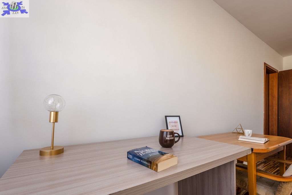 Mieszkanie zawiera 3 pokoje, wyposażone w kanapy, biurka, komody i szafy. Kuchnia wyposażona we wszelkie niezbędne sprzęty kuchenka gazowa, piekarnik, okap, zmywarka, lodówko-zamrażarka, zlewozmywak, pralka meble w zabudowie z dużą ilością miejsca do przechowywania rzeczy. W łazience duża wanna, WC, obszerne lustro, szafki z dużą ilością miejsca. W przedpokoju znajduje się dodatkowo duża szafa typu komandor.