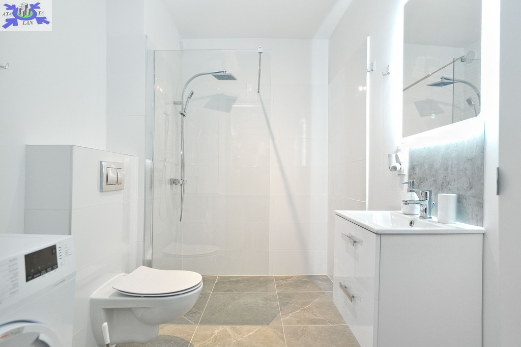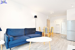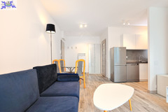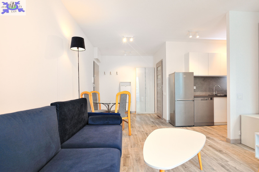 Na powierzchnię mieszkania 35,76 m2 składa się pokój z otwartą kuchnią i oddzielna sypialnia. Ponadto jest także łazienka z WC oraz prysznicem. Do dyspozycji osób mieszkających są wszelkie niezbędne sprzęty AGD typu lodówka, kuchnia, piekarnik, okap, pralka i zmywarka.
