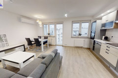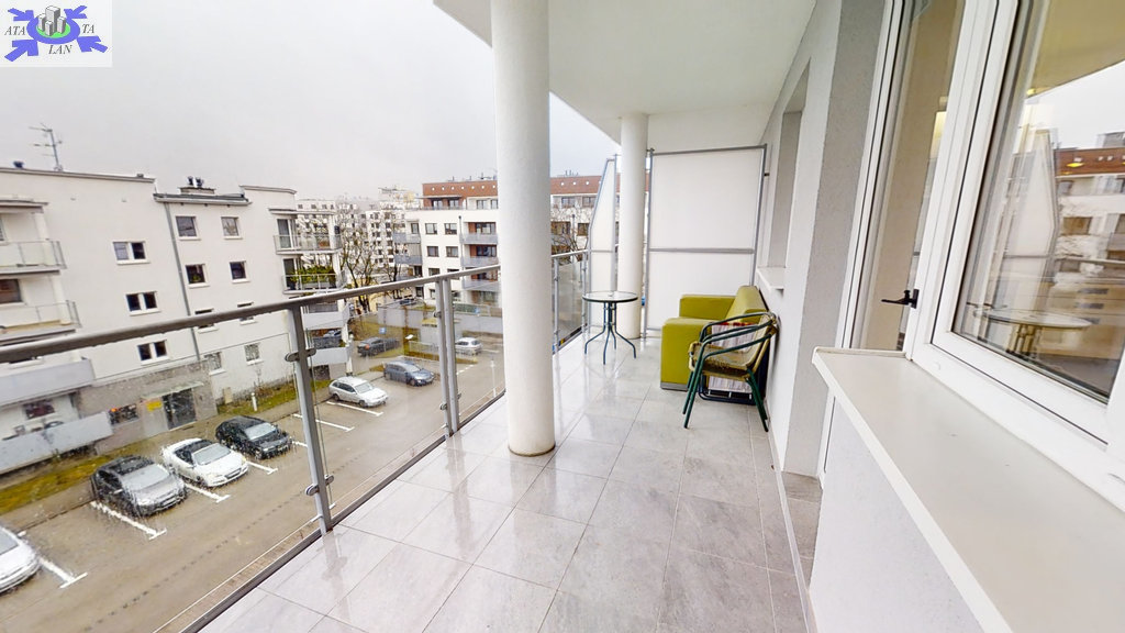 W mieszkaniu zamontowana klimatyzacja. Z salonu wyjście na duży balkon o powierzchni 14 m2.