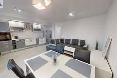 ---> Aneks kuchenny (lodówka, płyta indukcyjna, okap, piekarnik, kuchenka mikrofalowa, zmywarka)