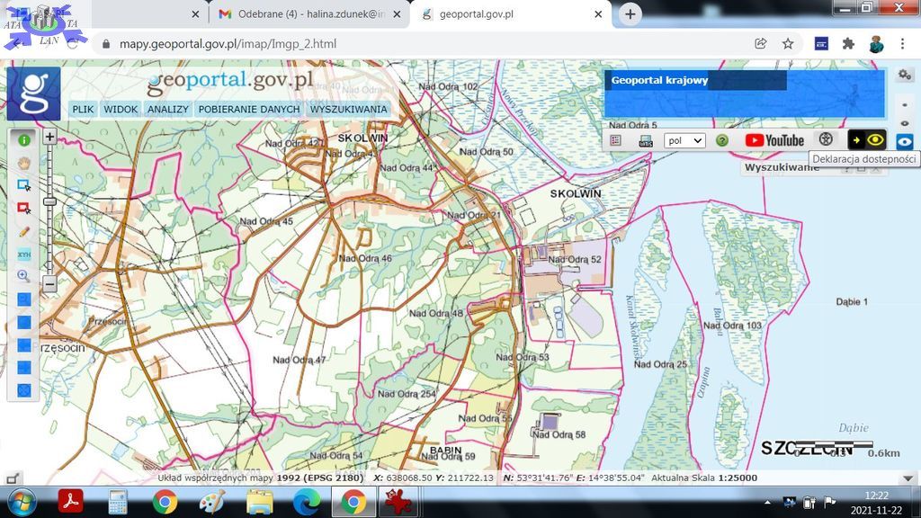 Nieruchomość gruntowa niezabudowana zlokalizowana w Szczecin-Skolwin, obr. Nad Odrą, o powierzchni 3074 m2. Użytek R IIIa pow. 3074 m2.