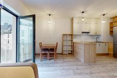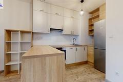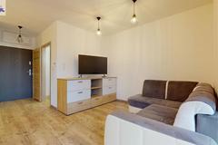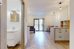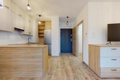 Pokój z aneksem kuchennym i wyjściem na balkon. Łazienka razem z wc, w przedpokoju szafa w zabudowie. Komórka lokatorska o powierzchni 2 m2 i miejsce postojowe pod budynkiem.