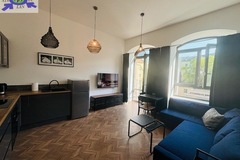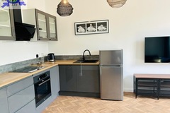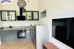 Nieruchomość została wykończona w wysokim standardzie, z dbałością o detale oraz funkcjonalność przestrzeni. Wnętrze jest w pełni umeblowane i wyposażone w sprzęt AGD (m.in. lodówka, płyta grzewcza, piekarnik, okap, pralka), co zapewnia komfortowe warunki do zamieszkania od pierwszego dnia.