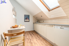 Widna kuchnia W pełni wyposażona w sprzęt AGD (zmywarka, piekarnik, lodówka, okap).