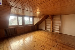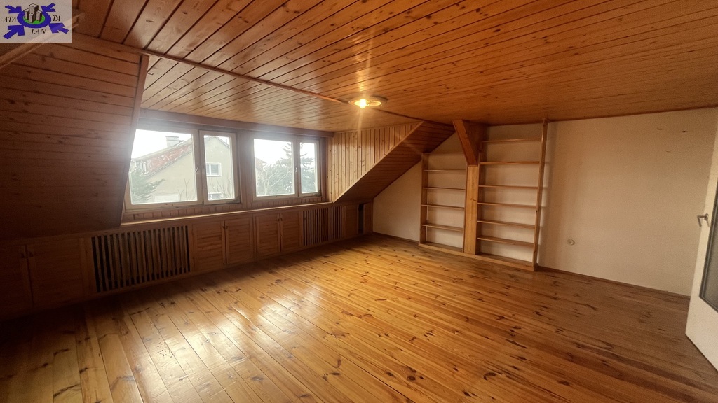 Na poddaszu przestronny pokój z widokiem na ogród oraz dwa pomieszczenia do zagospodarowania np. na pokoje lub przeznaczyć na łazienkę lub kuchenkę , ponieważ doprowadzone są wszelkie media .