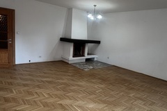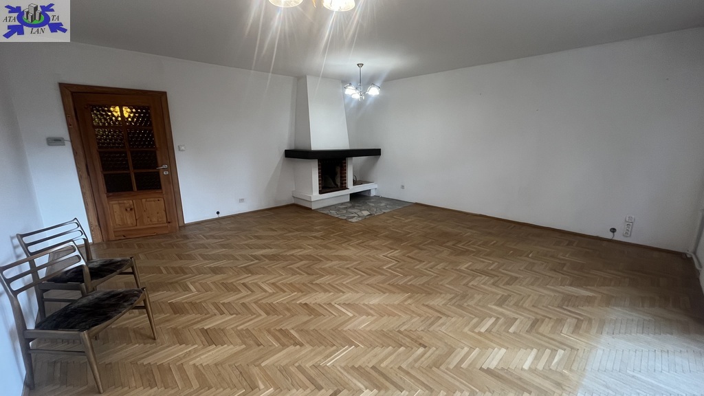 W salonie kominek ,na podłogach parkiet dębowy ,ściany gładzone pomalowane.