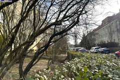 Przed i za blokiem zielony teren. W niedalekiej odległości środki komunikacji miejskiej, sklepy.