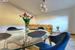 Reprezentacyjna, jasna przestrzeń dzienna z wyjściem na loggię, usytuowana na wschód. Wyposażony w duży "wypoczynek" wraz ze stolikami kawowymi, duży stół z krzesłami oraz komodę.